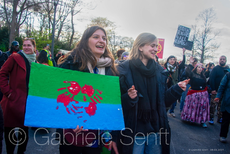 08.04.2025 Berlin Elif Eralp, MdA Die Linke – Redebeitrag am Brandenburger Tbei der Großen Demonstration anlässlich des Welt Roma Tages in Berlin.