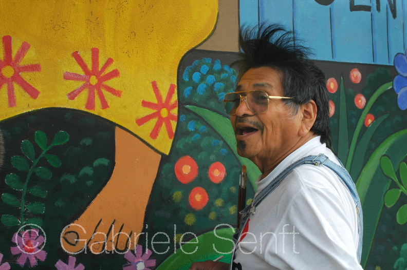 15.09. 2005 Manuel Garcia Moja beim zweiten Malen des Giebelwandgemäldes "Nicaraguanisches Dorf Monimbo" in Berlin Lichtenberg